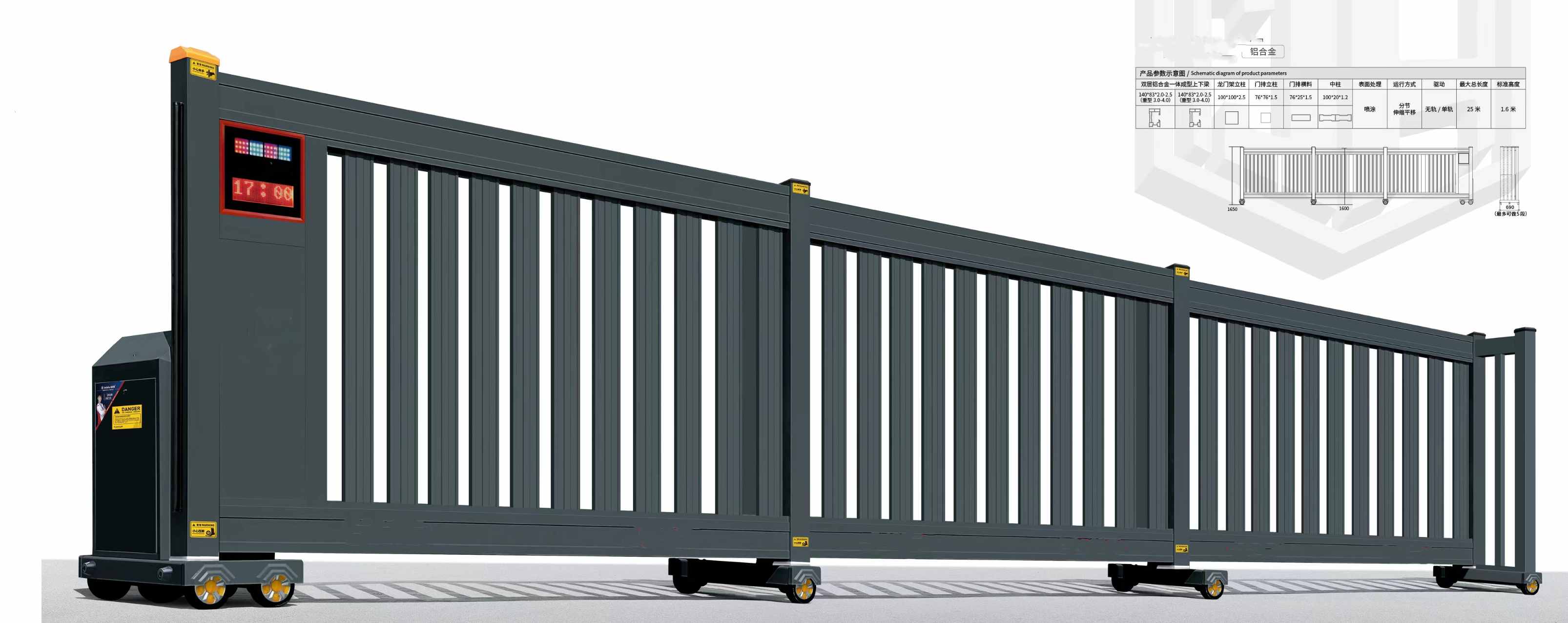 1.4輪驅(qū)動:運(yùn)行快捷、平穩(wěn)、不打滑、牽引力達(dá)300N。 2.專用耐磨輪:直徑120mm加大橡膠耐磨輪選用進(jìn)口PVC材料制作,在30米行程里通過次來回測試,行走輪無明顯磨損可用3-5年時間,由于輪子直徑大,風(fēng)雨后不影響電動門的正常運(yùn)行。 …